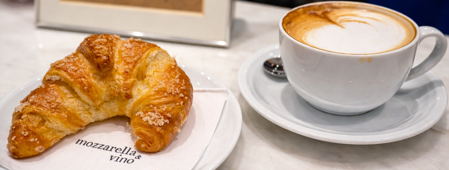 This is the typical breakfast in Italy, recreated with care at Mozzarella & Vino.